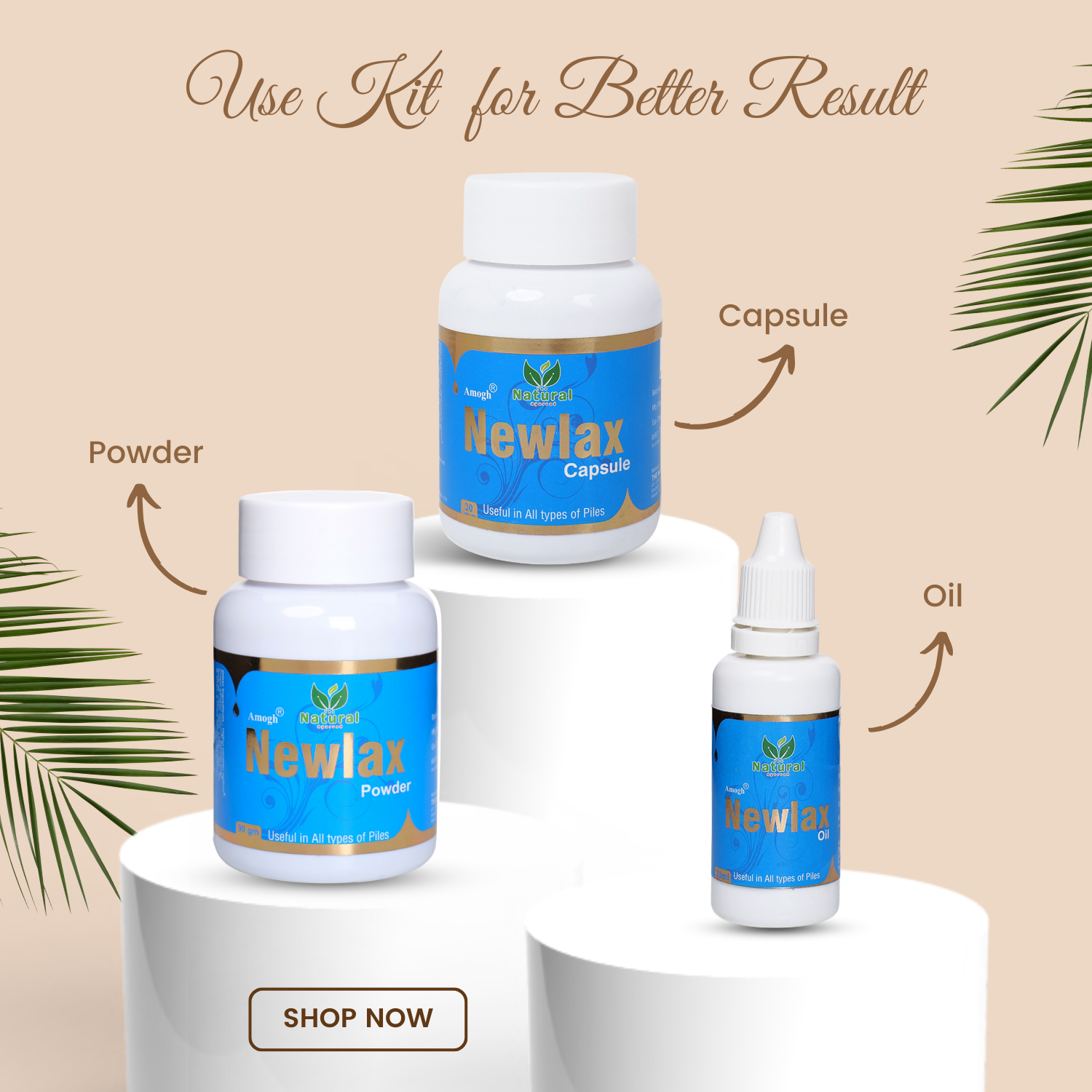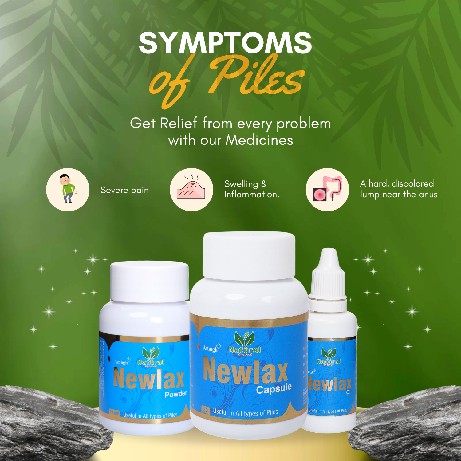 The Newlax Kit is a comprehensive solution specifically designed to provide relief from piles (hemorrhoids) symptoms, such as pain, swelling, itching, and discomfort. It includes a combination of natural products to offer a holistic approach for piles management.